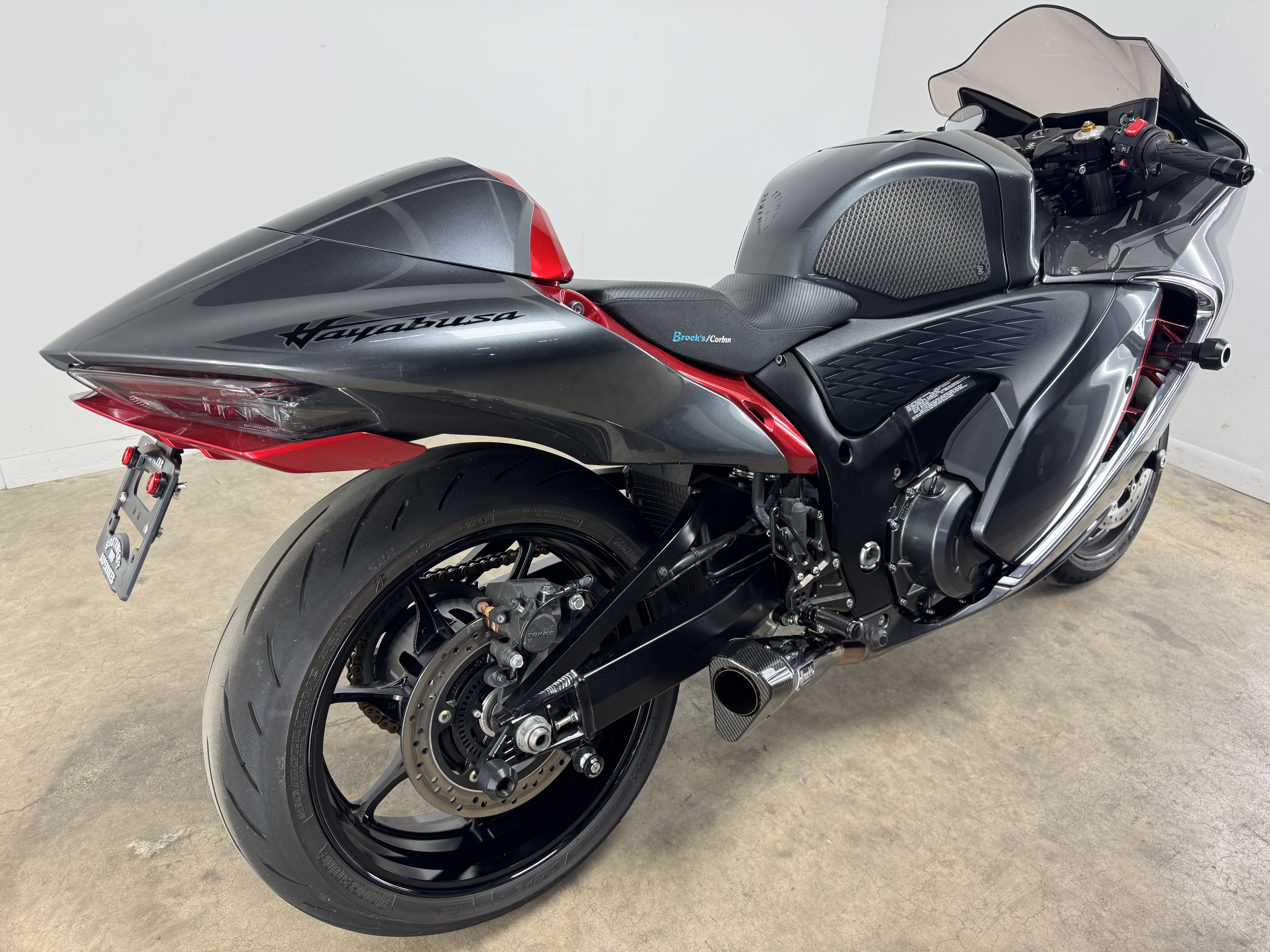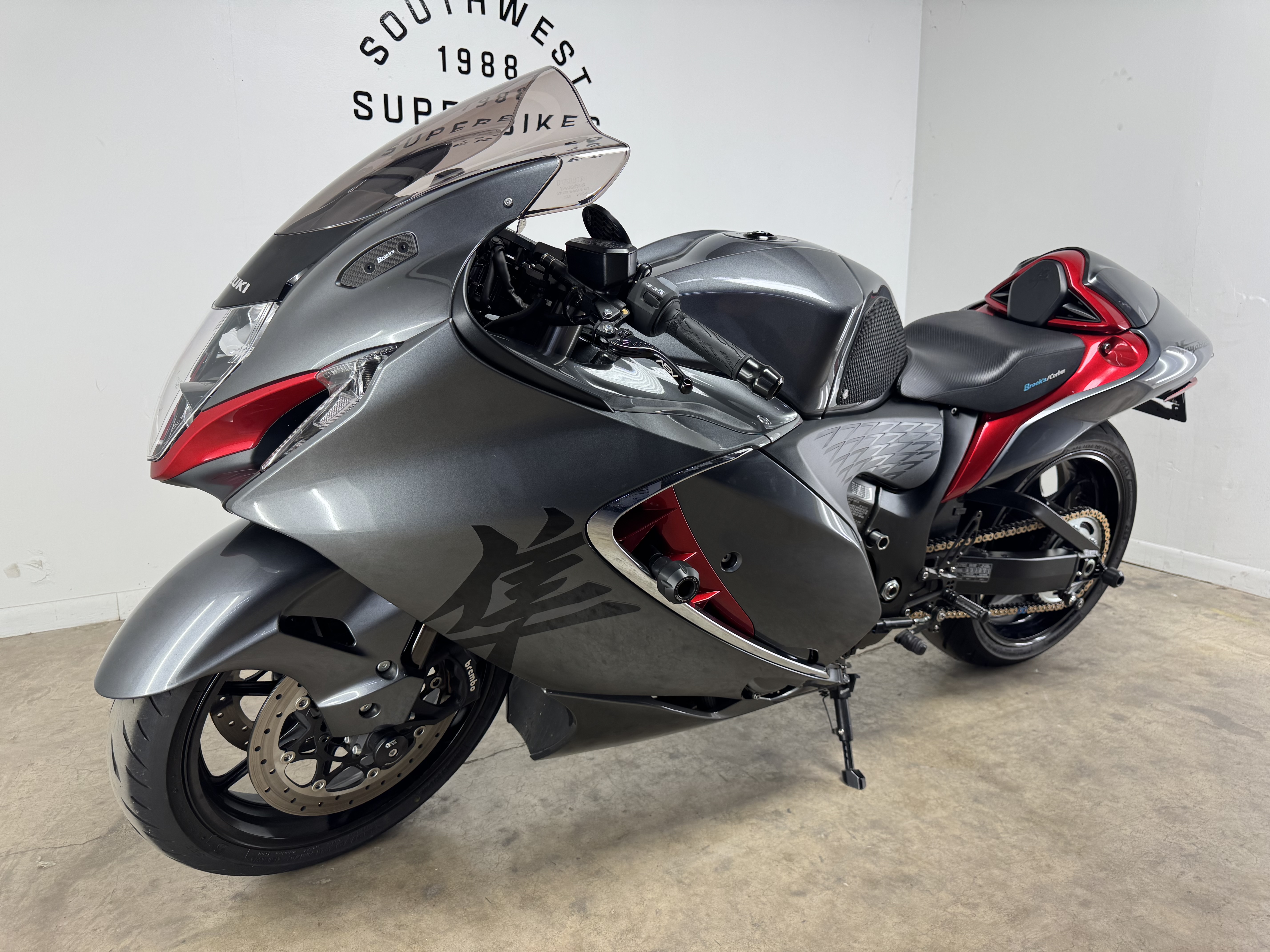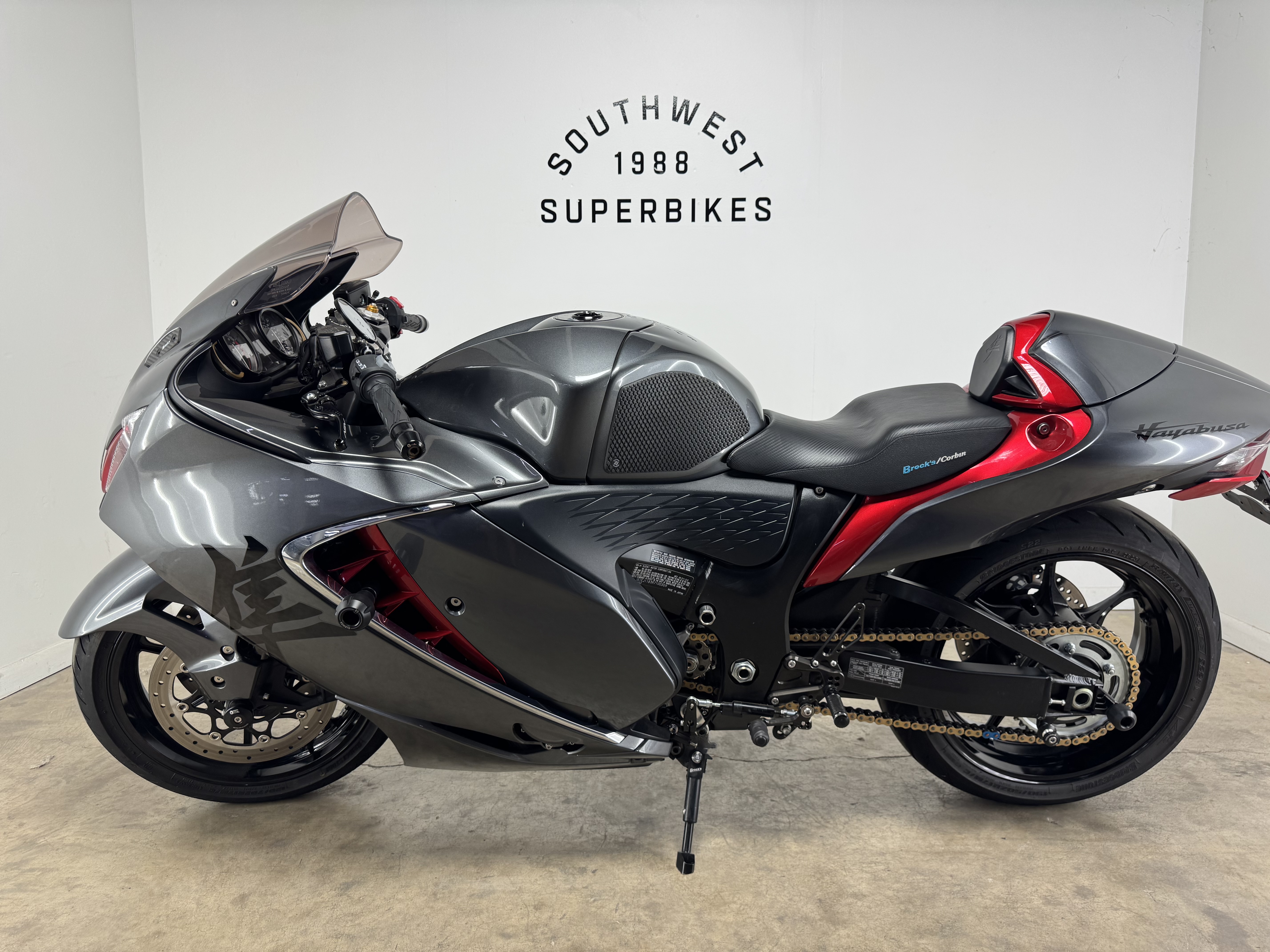 - For 2024, riders may choose from a pair of sensational color schemes: Metallic Thunder Gray & Candy Darling Red or the deep, dark Metallic Matte Black & Glass Sparkle Black combination. Each scheme features the iconic Hayabusa Kanji symbols and name logos.