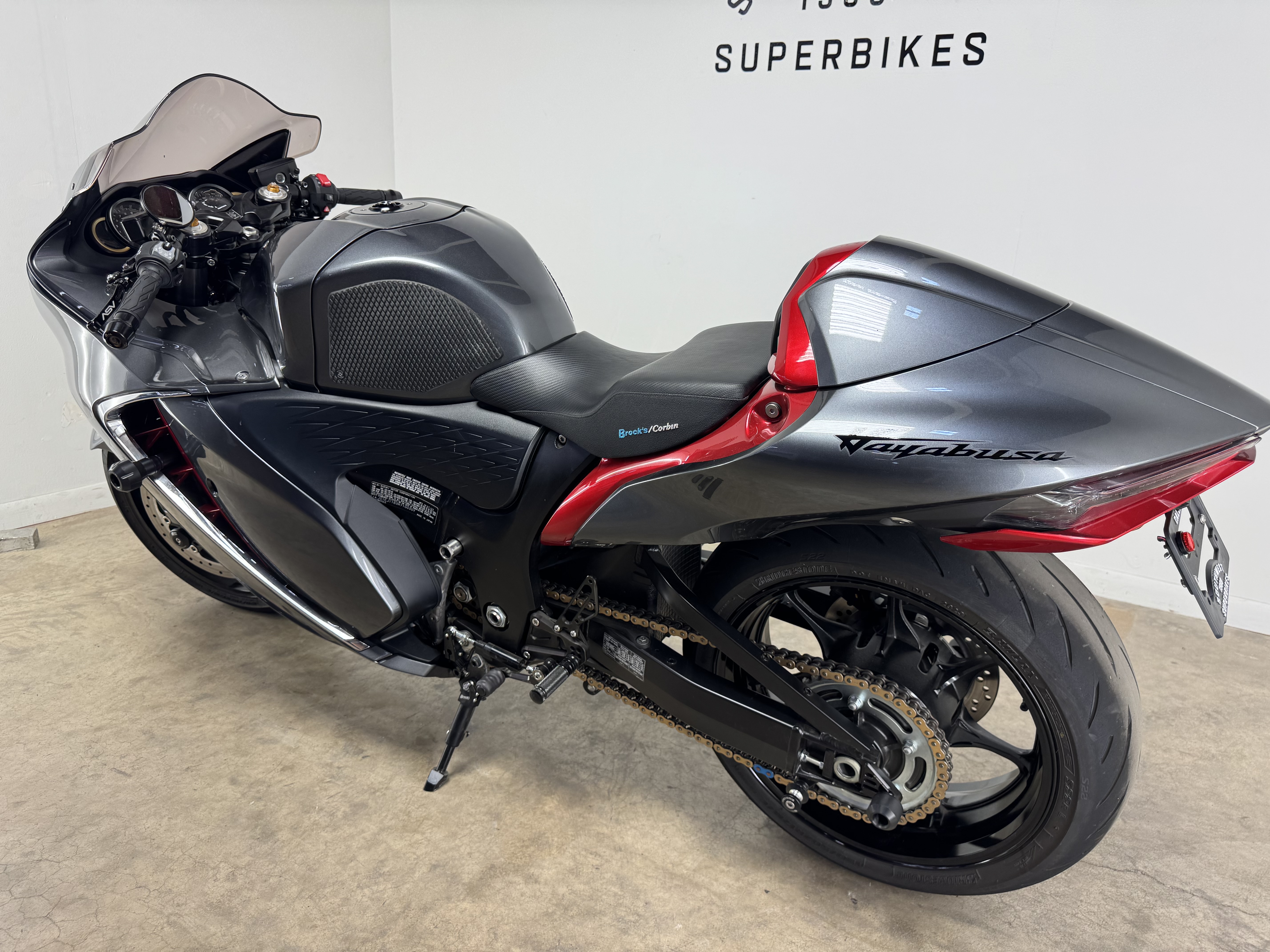- For 2024, riders may choose from a pair of sensational color schemes: Metallic Thunder Gray & Candy Darling Red or the deep, dark Metallic Matte Black & Glass Sparkle Black combination. Each scheme features the iconic Hayabusa Kanji symbols and name logos.